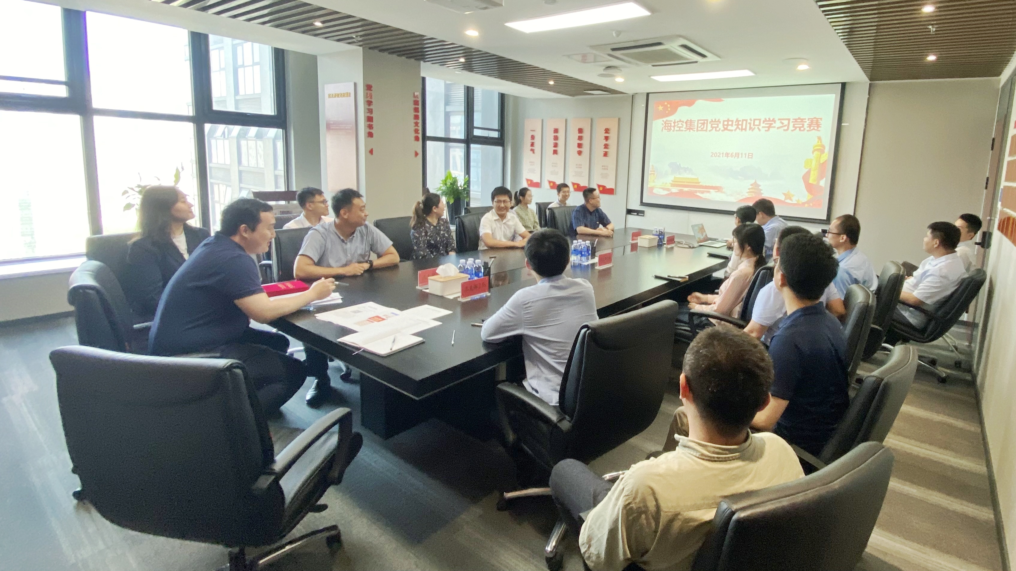 為慶祝中國共產(chǎn)黨成立100周年,豐富集團黨史學(xué)習(xí)教育形式與內(nèi)容,切實提高全體職工的黨史學(xué)習(xí)水平,推動集團黨史學(xué)習(xí)教育走深走實,真正做到學(xué)史明理、學(xué)史增信、學(xué)史崇德、學(xué)史力行,6月11日下午,海控集團在黨員活動室組織開展了黨史知識學(xué)習(xí)競賽。