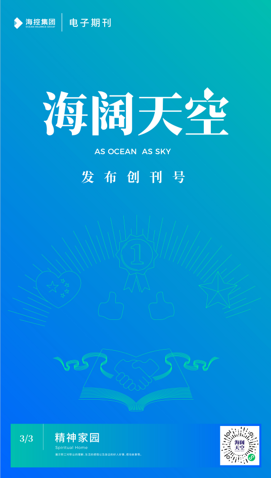 為進一步豐富集團企業(yè)文化載體,打造“協(xié)同、創(chuàng)新、活力”的海控大家庭,我們創(chuàng)立了“海闊天空”電子期刊,這是一個思想交流的平臺,像海洋一樣廣闊,像天空一樣高遠,在這里可以碰撞思想的火花;這是一個才華展示的平臺,海闊憑魚躍,天高任鳥飛,是金子就能發(fā)出耀眼的光芒;這是一個情感溝通的平臺,表達情感、分享快樂,構(gòu)筑你我的精神家園。